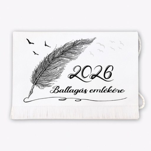 Fehér szövetre nyomott fekete minta, fehér zsinórral.