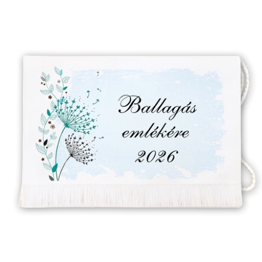Fehér tarisznya, amelyen a pitypang virágait fújja tova a szél, és elmélázó mintájával emlékeztet a múló pillanatok szépségére. Egy elegáns, időtálló választás, amely méltón megőrzi a ballagás hangulatát. Mérete: 14 x 20 cm.
