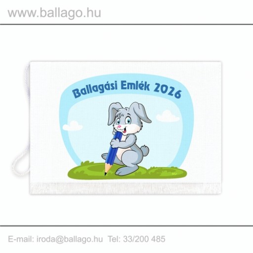 Ovisjeles, nyomott fehér vászon tarisznya, fehér zsinórral.