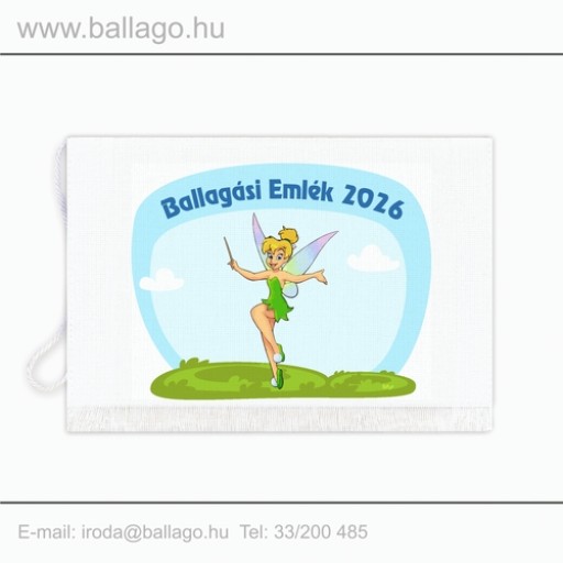 Ovisjeles, nyomott fehér vászon tarisznya, fehér zsinórral.