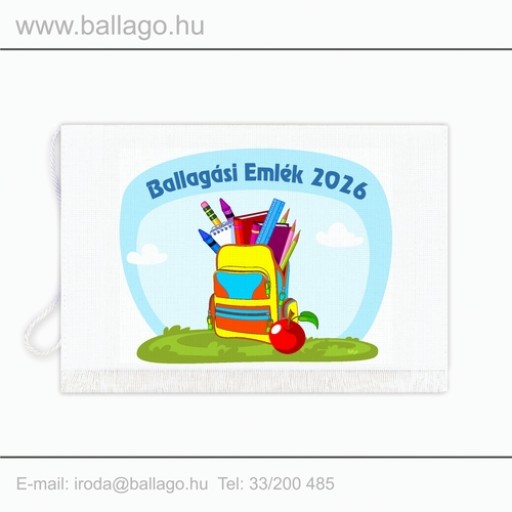 Ovisjeles, nyomott fehér vászon tarisznya, fehér zsinórral.