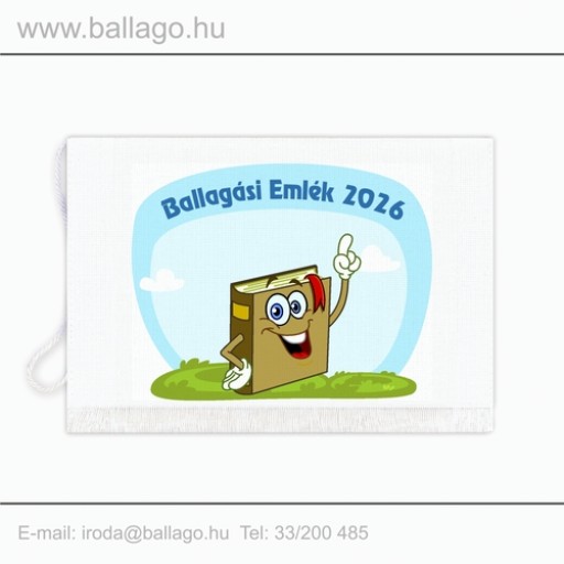 Ovisjeles, nyomott fehér vászon tarisznya, fehér zsinórral.