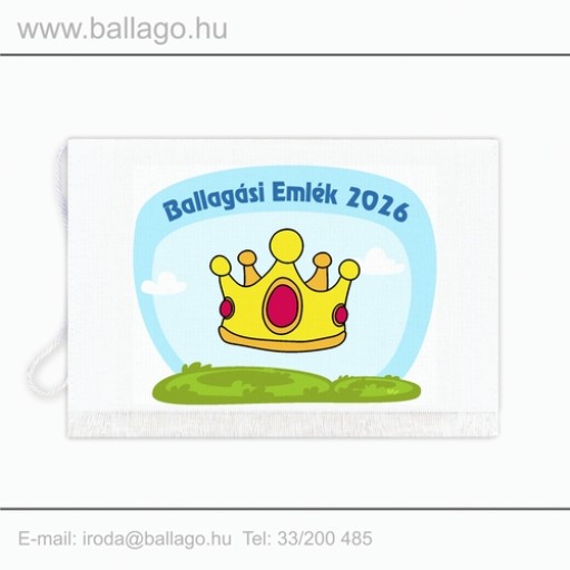 Ovisjeles, nyomott fehér vászon tarisznya, fehér zsinórral.