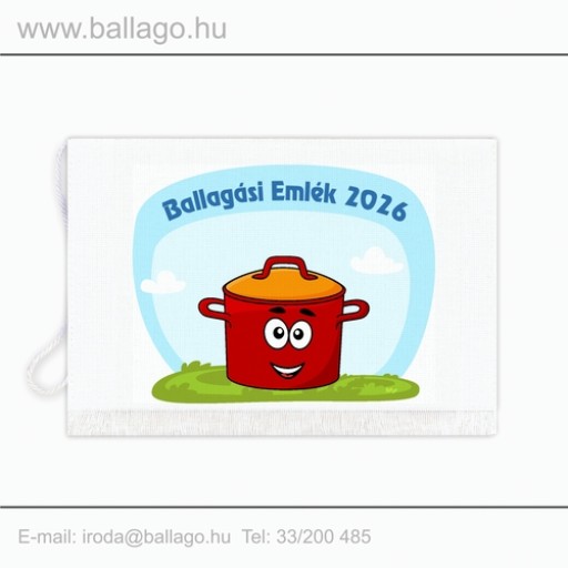 Ovisjeles, nyomott fehér vászon tarisznya, fehér zsinórral.