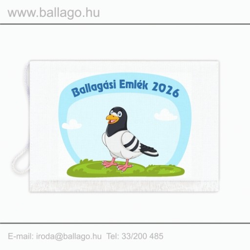 Ovisjeles, nyomott fehér vászon tarisznya, fehér zsinórral.