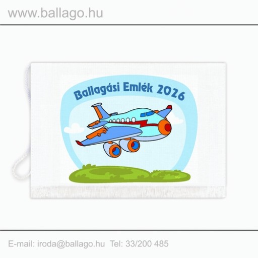 Ovisjeles, nyomott fehér vászon tarisznya, fehér zsinórral.