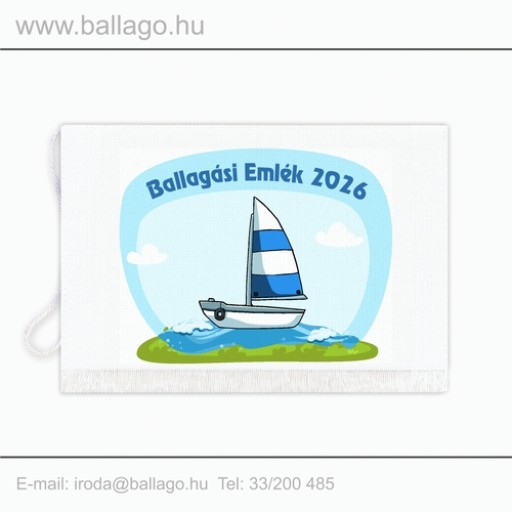 Ovisjeles, nyomott fehér vászon tarisznya, fehér zsinórral.