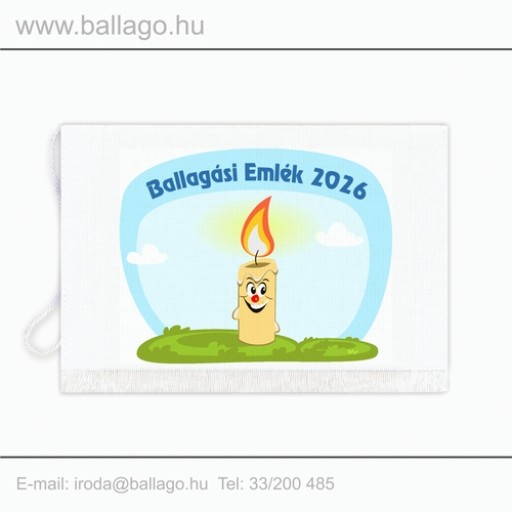 Ovisjeles, nyomott fehér vászon tarisznya, fehér zsinórral.