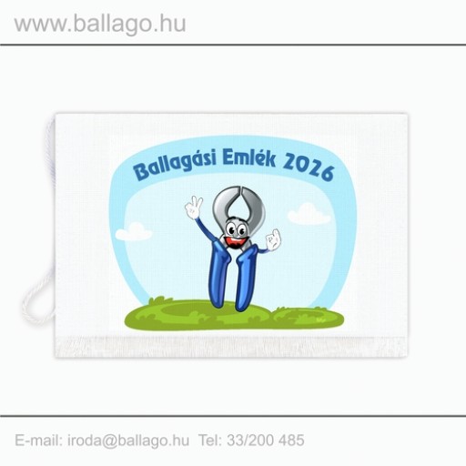 Ovisjeles, nyomott fehér vászon tarisznya, fehér zsinórral.