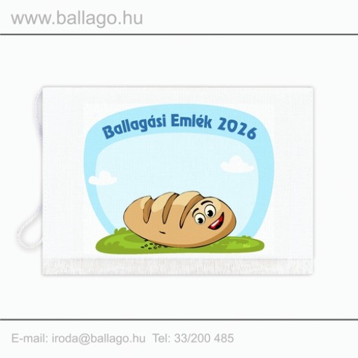 Ovisjeles, nyomott fehér vászon tarisznya, fehér zsinórral.