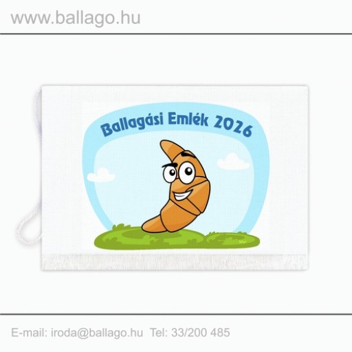 Ovisjeles, nyomott fehér vászon tarisznya, fehér zsinórral.
