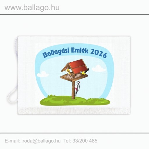 Ovisjeles, nyomott fehér vászon tarisznya, fehér zsinórral.