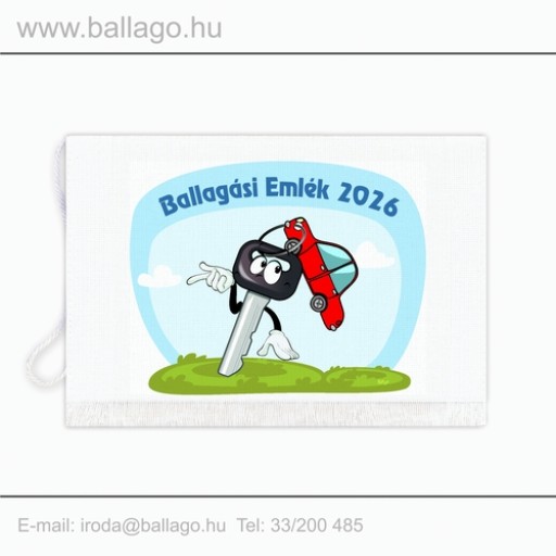Ovisjeles, nyomott fehér vászon tarisznya, fehér zsinórral.