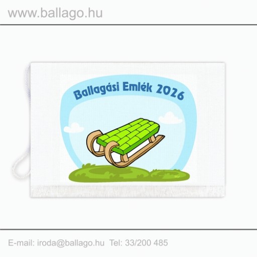 Ovisjeles, nyomott fehér vászon tarisznya, fehér zsinórral.