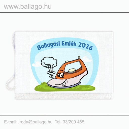 Ovisjeles, nyomott fehér vászon tarisznya, fehér zsinórral.