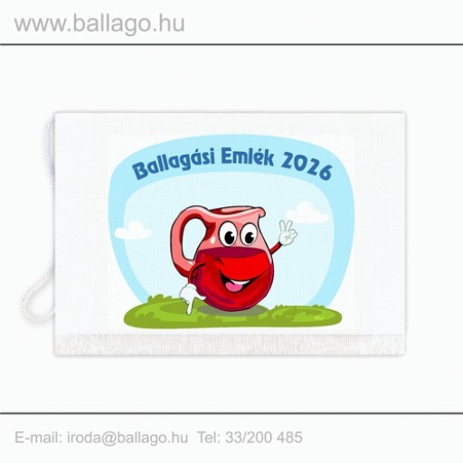 Ovisjeles, nyomott fehér vászon tarisznya, fehér zsinórral.