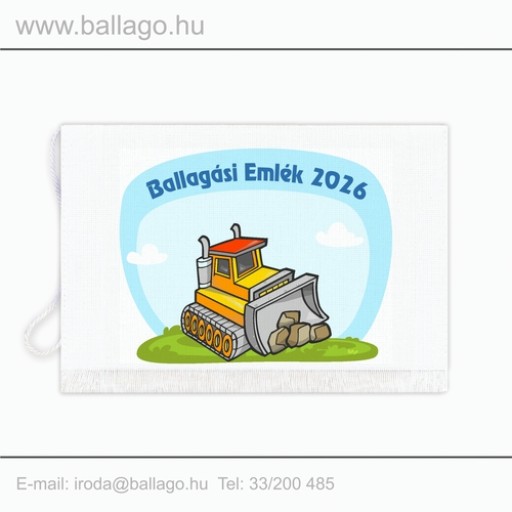 Ovisjeles, nyomott fehér vászon tarisznya, fehér zsinórral.