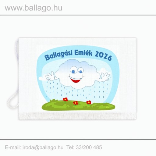 Ovisjeles, nyomott fehér vászon tarisznya, fehér zsinórral.