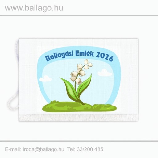 Ovisjeles, nyomott fehér vászon tarisznya, fehér zsinórral.