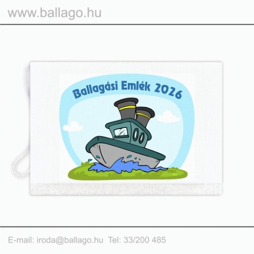 Ovisjeles, nyomott fehér vászon tarisznya, fehér zsinórral.