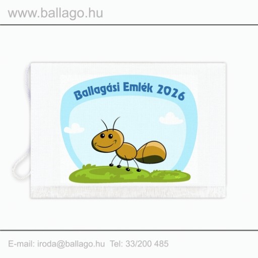 Ovisjeles, nyomott fehér vászon tarisznya, fehér zsinórral.