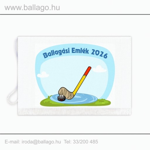 Ovisjeles, nyomott fehér vászon tarisznya, fehér zsinórral.