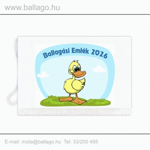 Ovisjeles, nyomott fehér vászon tarisznya, fehér zsinórral.