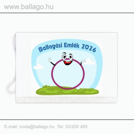 Ovisjeles, nyomott fehér vászon tarisznya, fehér zsinórral.