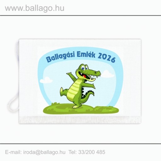 Ovisjeles, nyomott fehér vászon tarisznya, fehér zsinórral.