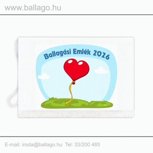 Ovisjeles, nyomott fehér vászon tarisznya, fehér zsinórral.