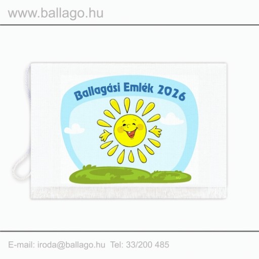 Ovisjeles, nyomott fehér vászon tarisznya, fehér zsinórral.