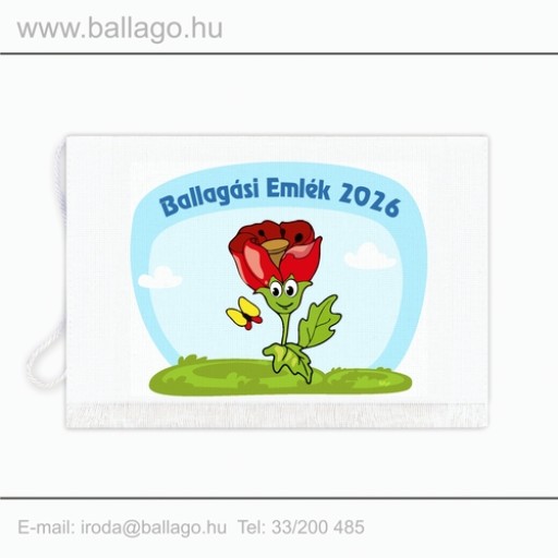 Ovisjeles, nyomott fehér vászon tarisznya, fehér zsinórral.