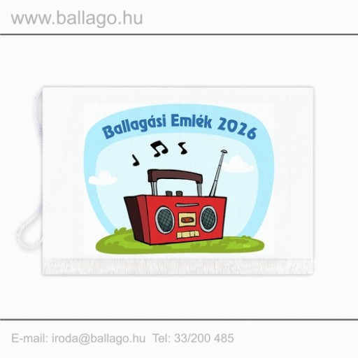 Ovisjeles, nyomott fehér vászon tarisznya, fehér zsinórral.