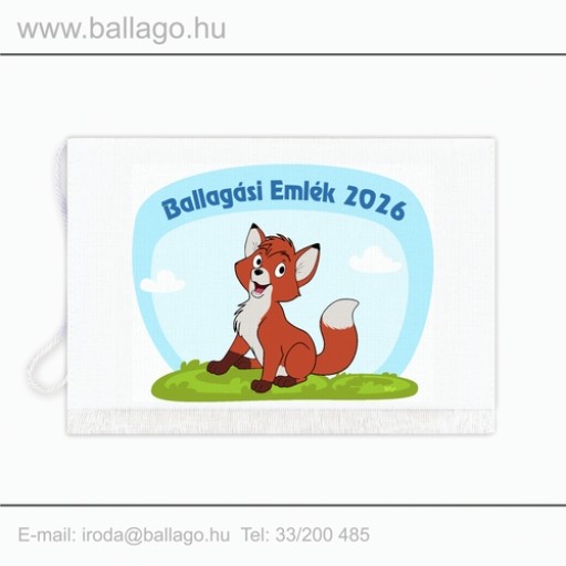 Ovisjeles, nyomott fehér vászon tarisznya, fehér zsinórral.
