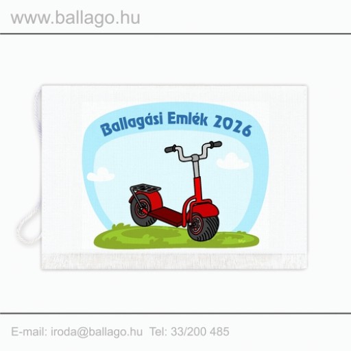 Ovisjeles, nyomott fehér vászon tarisznya, fehér zsinórral.