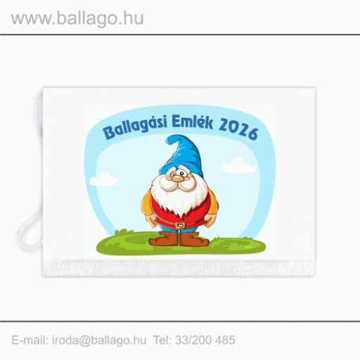 Ovisjeles, nyomott fehér vászon tarisznya, fehér zsinórral.