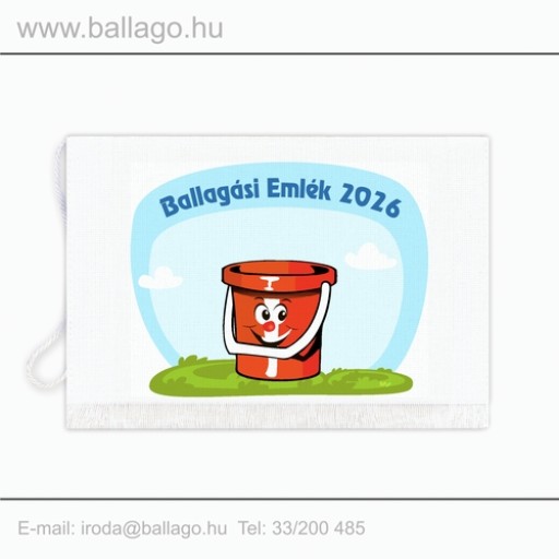Ovisjeles, nyomott fehér vászon tarisznya, fehér zsinórral.