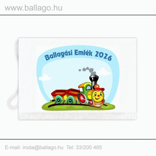 Ovisjeles, nyomott fehér vászon tarisznya, fehér zsinórral.