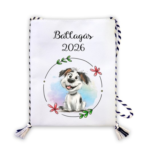 Fehér szövet tarisznya, kutyus mintával.